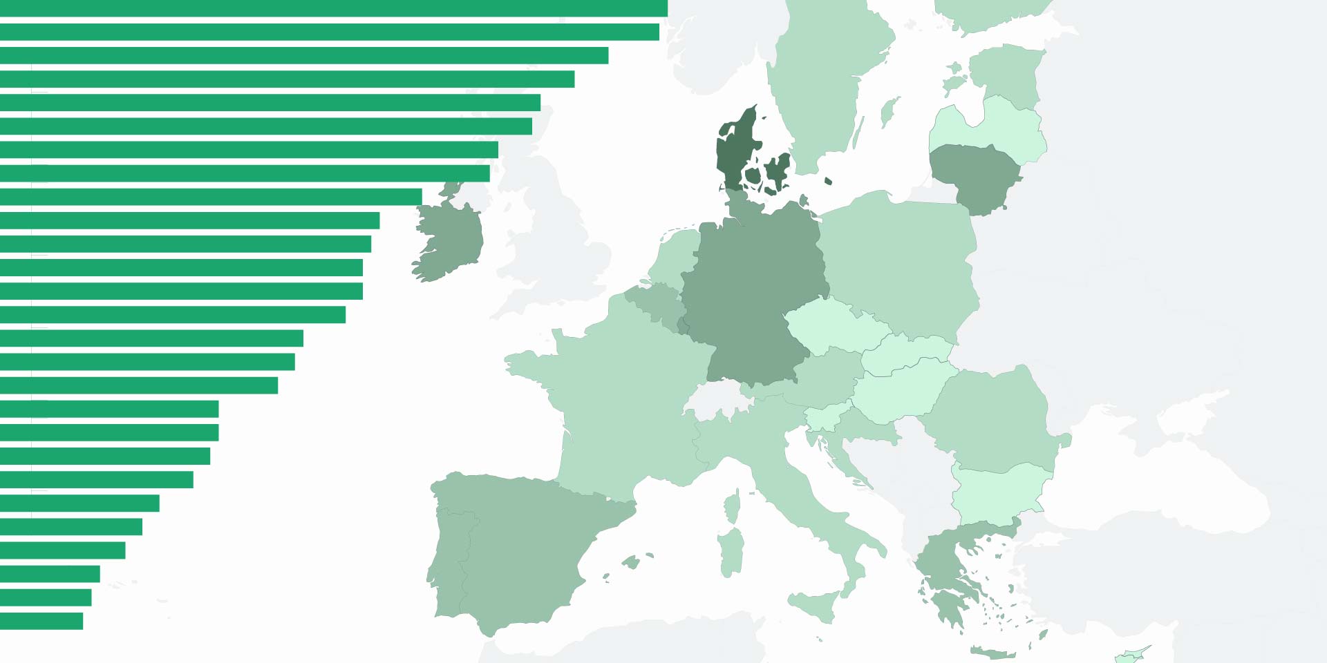 The share of renewables in European energy production in 2020 increased to 38 percent, overtaking fossil fuels (which fell to 37 percent) for the first time. Europe has marked this as an important moment in its transition to clean energy after the signing of the European Green Deal, which lays out the EU’s path toward climate neutrality and radically reducing the level of greenhouse gas emissions by 2050. Overall, the transition to alternative sources of energy like solar and wind has been slow, but the growth in production of renewable energy sources has proved robust despite the pandemic.