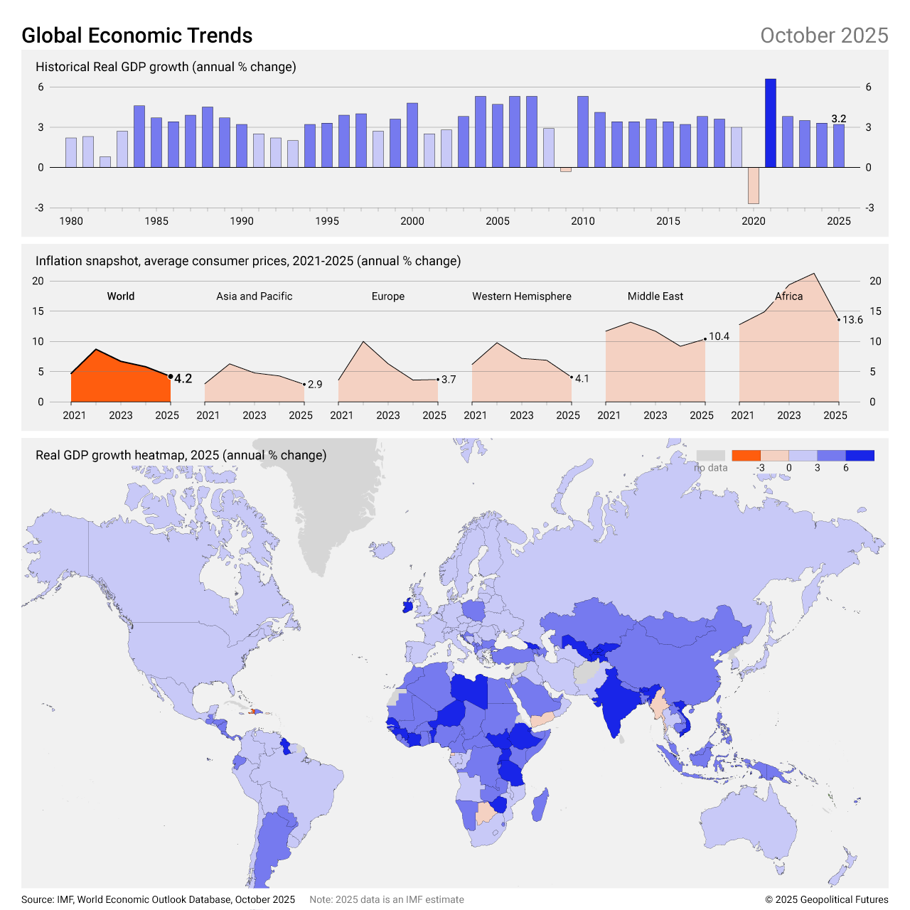 The International Monetary Fund’s latest global economic data reflect cautious optimism. In its 2025 Global Growth Forecast, the IMF raised its projection for the second time this year, revising growth upward by 0.2 percentage points to 3.2 percent from 3 percent in July. The improvement suggests modest momentum in global economic activity, supported by gradual adjustment to trade tensions and private-sector resilience. Firms have adapted more quickly to geopolitical disruptions and protectionist policies, particularly in supply chains and trade flows.