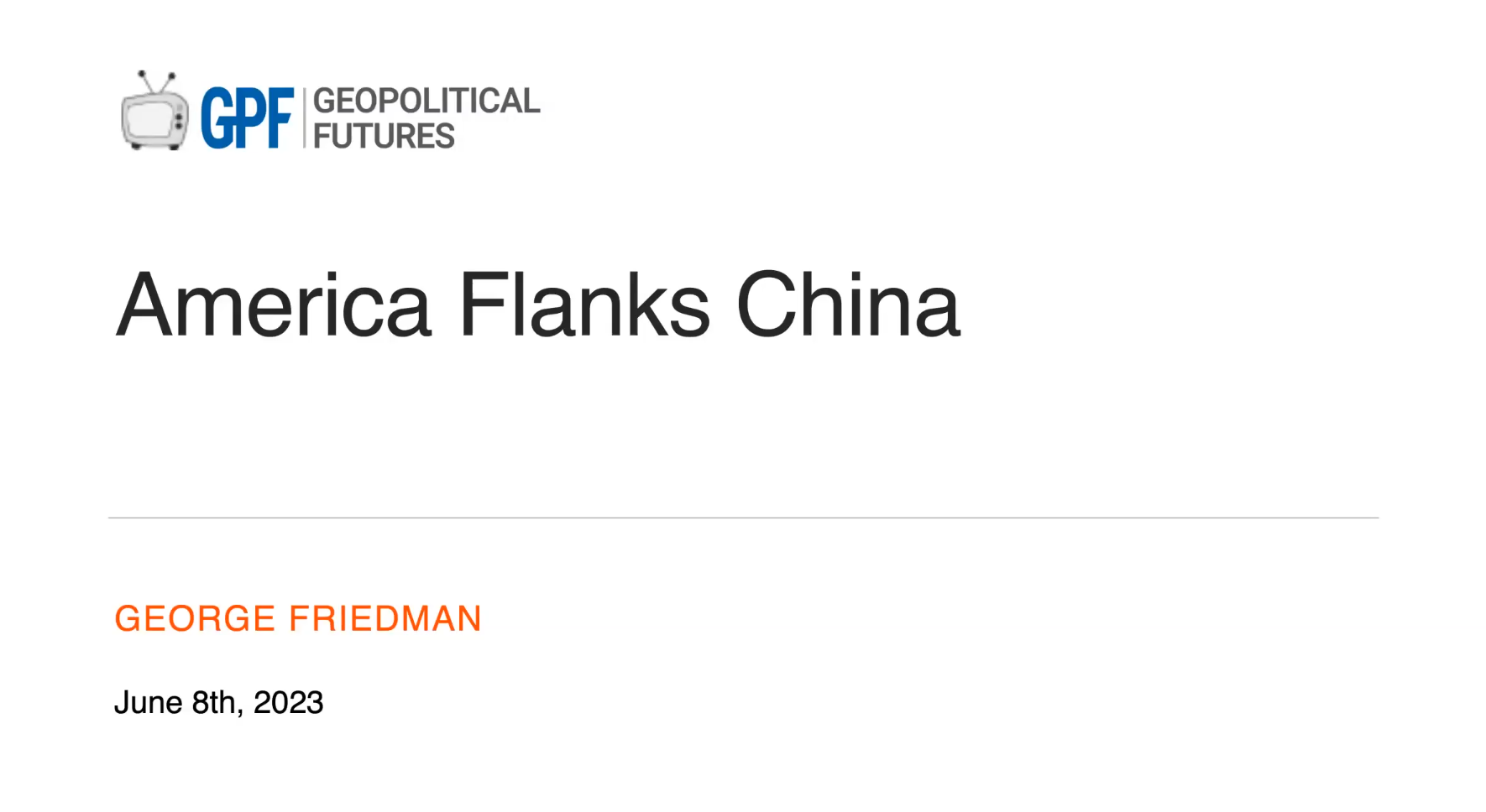 I can't emphasize enough my appreciation for you and the rest of the staff at Geopolitical Futures. Over the past three years... I have had a lot of bad information and impoverished understanding corrected because of your analyses.