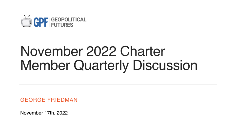 Geopolitical Futures (GPF) was founded in 2015 by George Friedman, international strategist and author of The Storm Before the Calm and The Next 100 Years. GPF is non-ideological, analyzes the world and forecasts the future using geopolitics: political, economic, military and geographic dimensions at the foundation of a nation.