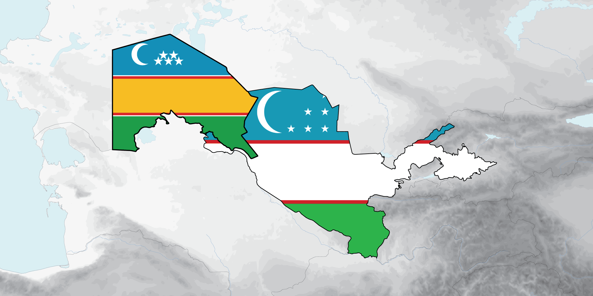 The Republic of Karakalpakstan, located in northwestern Uzbekistan, is a product of the peculiar boundary delimitations within the Soviet Union. It was part of the Kirghiz Autonomous Socialist Soviet Republic, the Kazakh ASSR, and the Russian Soviet Federative Socialist Republic before it became part of Uzbekistan. Today, it is the largest region of Uzbekistan and retains its own state symbols, constitution, government and parliament.